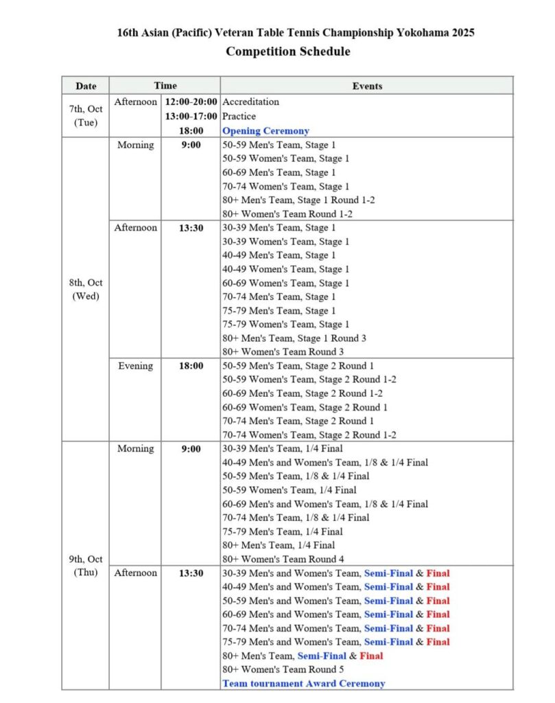 2024年第15回アジア(太平洋)ベテラン卓球選手権大会 韓国,京畿道,城南市 要項(日本語版PDF)